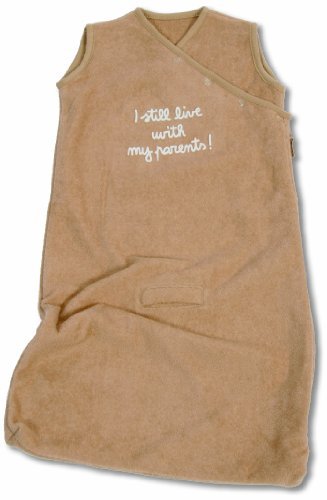 Suitable for newborns and up to 9 months in 1.0 tog for room temperatures of 18-24 degrees;The safest and most comfortable way for babies to sleep;Aperture to front and back for car seat, stroller and highchair harness;Machine washable at 30 degrees and tumble dry on a low heat;This Cacao Brown sleeping bag features 3D wording I still live with my parents!;This item complements other items in the Bubble, Grape and Sky Blue Collections.