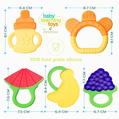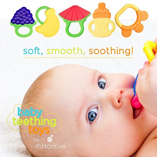 - Baby Teether By Ashtonbee (5 Pack) - FDA Approved BPA Free 100% Safe Soft Chewy Silicone Material, Painless Colourful Fun Set For Infant And Toddler.(平行輸入品)