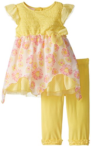 Little Lassベビー女の子フリル付きニットプリントシフォンチュールCapri Set カラー: イエロー