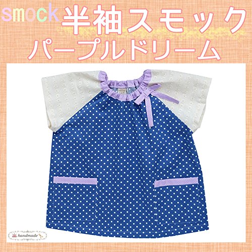 [スモック] パープルドリーム♪ 綿レースの袖、襟元リボン♪ (90cm)