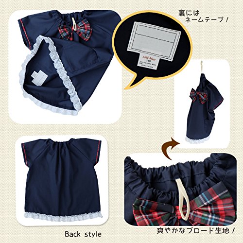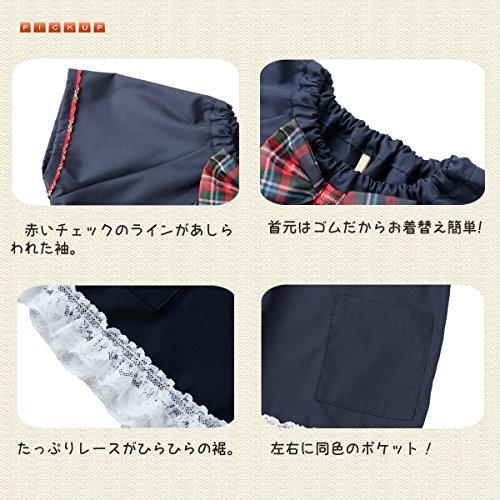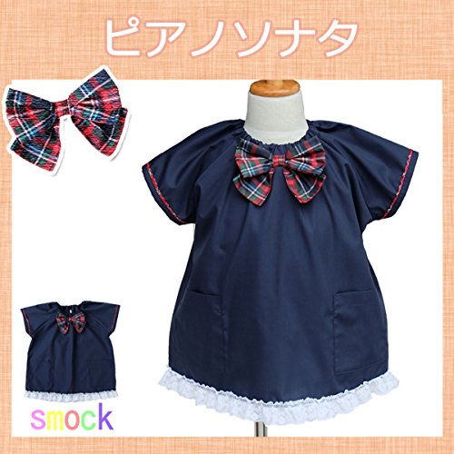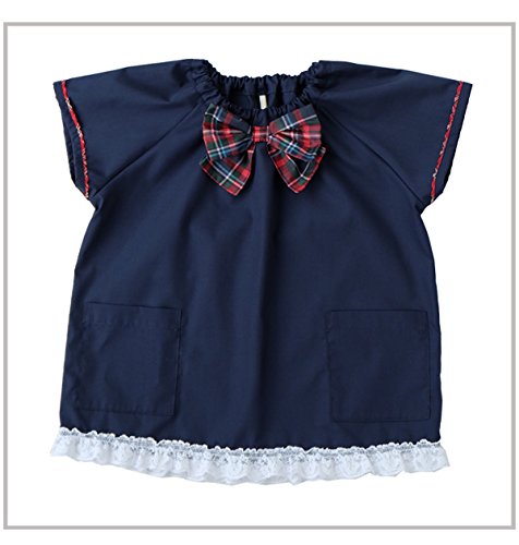 - 紺色に赤いチェックが映えるお嬢様のイメージの半袖スモック♪
