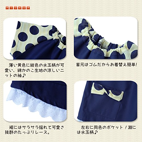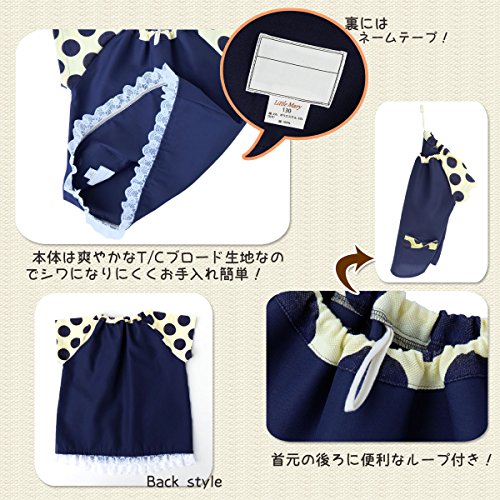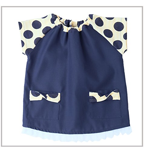- 紺色に大きな水玉が映える半袖スモック♪