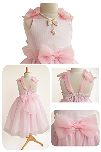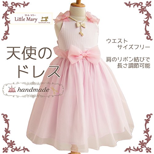 ギャザーたっぷりのふわふわドレスはシンプルなのに 弾けるような輝きに溢れています!ピンクのオーガンジーの 生地をたっぷりと使用しています。このドレスの着用の仕方は 下から上へとあげて肩でリボンを結びます。肩リボンの結び方で 長さを調節すれば、表示のサイズより小さなときから大きくなるまで 長い期間着用できます。ウエストはフリーサイズとなっています。 仕上げは、ベルトとなる大きなリボンを後ろで結びます。 裾はパニエを着用するとよりふんわり大きく広がります。 90cm~130cmまで幅広くサイズ展開しています。 Little Maryオリジナル ハンドメイド商品です。