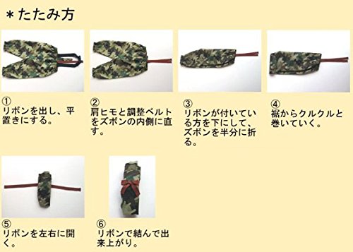携帯する時などはクルクルと丸め、背中の内側に付いてるヒモで結ぶと、コンパクトにまとまります!