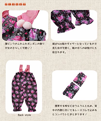 - 黒地にピンクの小バラ柄のかわいいお砂場着♪