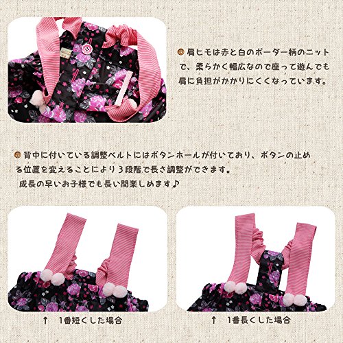 [天使のお砂場着 21] 黒に小バラ柄♪ 肩リボン&レース♪ 肩ヒモ長さ調整 撥水加工!(95cm)