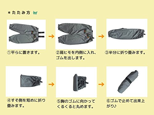 携帯する時などはクルクルと丸め、背中の内側に付いてるニットゴムで止めると、