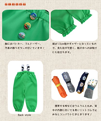 明るい黄緑に車柄のボタンがポイントのお砂場着♪