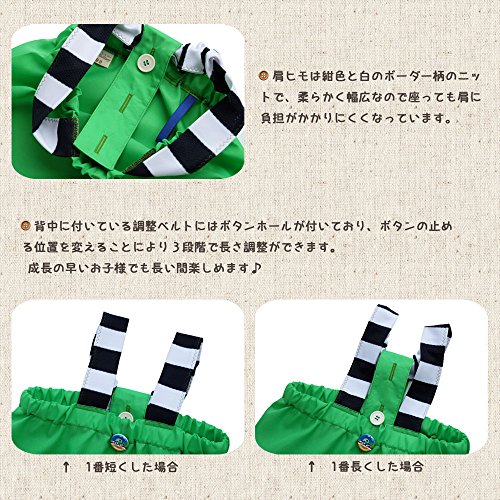 天使のお砂場着 4 黄緑×車柄ボタン♪ やわらか肩ニット 肩ヒモ長さ調節付き 撥水加工! (95cm)