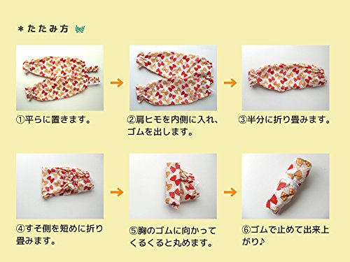携帯する時などはクルクルと丸め、背中の内側に付いてるレースゴムで止めると、 コンパクトにまとまります!