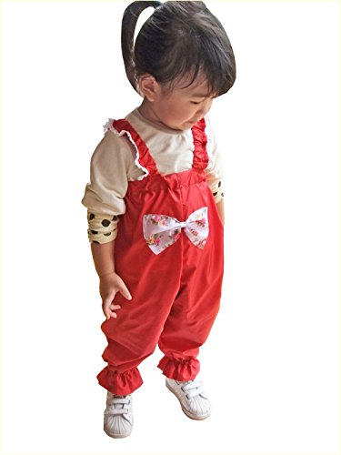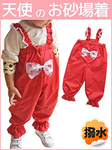 - 小バラ柄のリボンがチャームポイントの赤いお砂場着♪