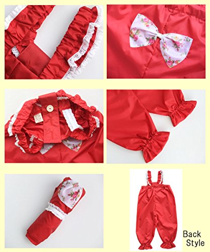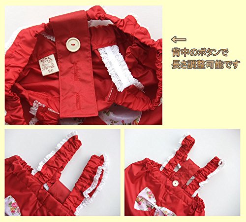 [天使のお砂場着 15] 赤 小バラ柄リボン♪ ひらひらレース! 肩ヒモ長さ調節付き 撥水加工! (110cm)