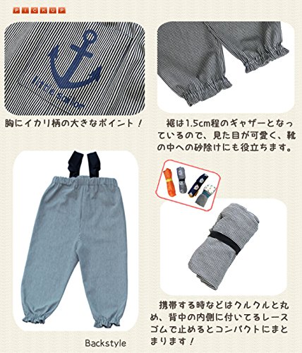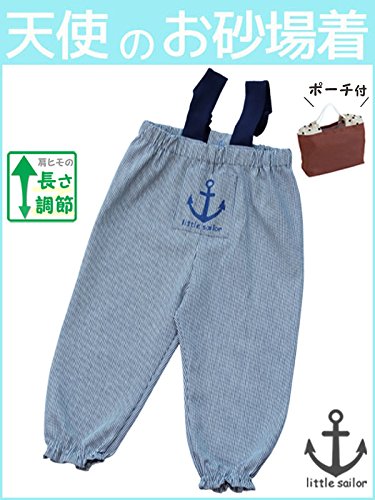 [天使のお砂場着 16] ヒッコリー♪ イカリ柄 肩ヒモ長さ調節付き! (95cm)