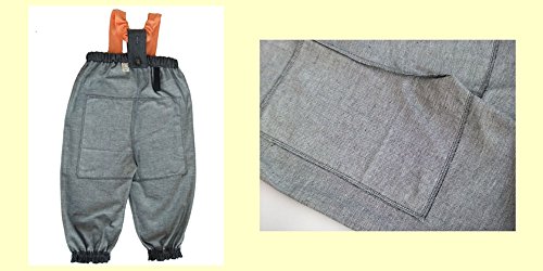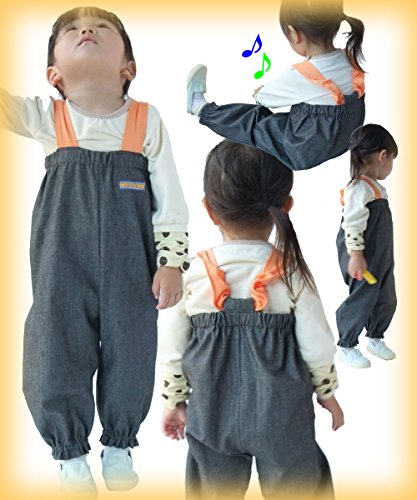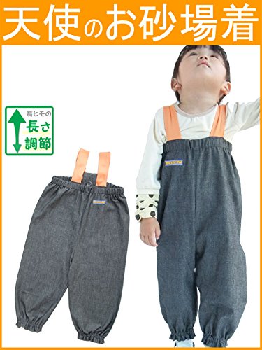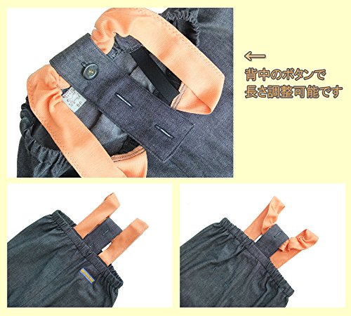 [天使のお砂場着 26] ソフトデニム×オレンジ肩ニット♪おしり二重仕立て♪ 肩ヒモ長さ調節付き! (100cm)