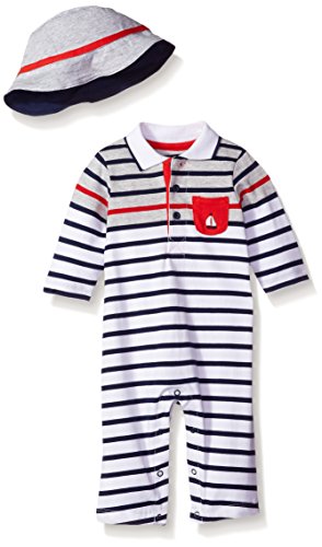 Little Meネイビーブルー、ホワイト、ベージュカーキストライプカバーオールはプリフェクト男の子に加えワードローブに必須のアイテムです。これは、簡単に衣装を調べるとオフを切り替えることができます。便利です。繋ぎで余分な服に保持しおむつバッグを構成しました。この小さなMeワンピースボディースーツ首が襟とボタン揃いのベビー帽子。