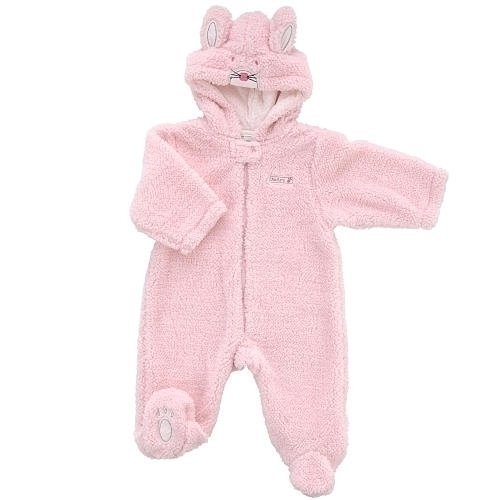 Your tiny angel will be super comfy on her next outing wearing the Girl's Bunny Fuzzy Pram. The snuggly shell zips up the front, and a cozy cotton lining is gentle against the skin; enclosed feet will keep her toasty. Sweet bunny accents including adorable ears detail the soft hood. Little Me Girl's Bunny Fuzzy Pram - Pink (3-6 Months) features: This hooded pram will keep Baby cozy Fuzzy shell: 100% polyester; Lining: 100% cotton Front zipper extends from the base to the snap neckline Hood is designed with sweet bunny accents Machine wash cold, tumble dry low Size: 3-6 months