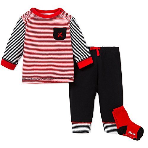 - Little MEベビーボーイズ3点セットは、普段の再生、幼稚園、またはご使用いただけます。男の子の衣装1枚、長袖シャツ、折り曲げアスレチックパンツ、1ペアの1ペアベビーソックス。