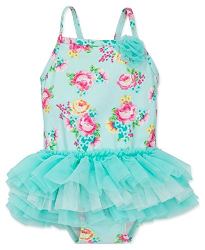 ゴージャスな乳児または幼児用ブルー花柄ワンピース水着てきている気がした。チュチュフリルでヒップ。