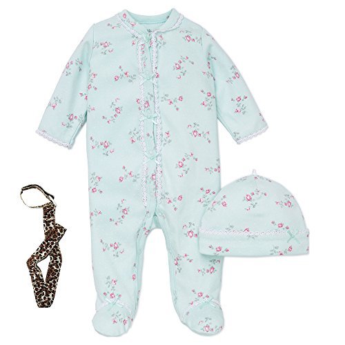 Little Me FootieベビーガールズFooted Sleeper Sleep N Play Hat andテザーフローラル カラー: グリーン