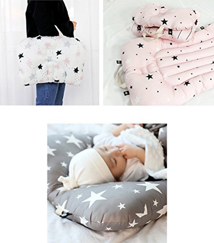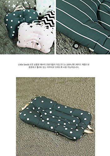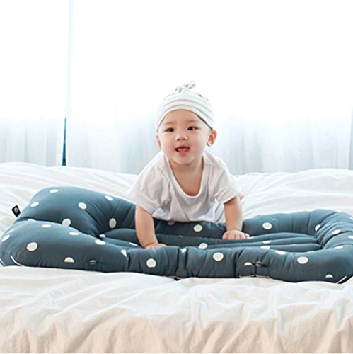- Cotton 100%素材に赤ん坊の皮膚に刺激もなく、気楽て枕一体型のデザインに枕なしに赤ちゃんが楽に横になれるベビーベッドです
