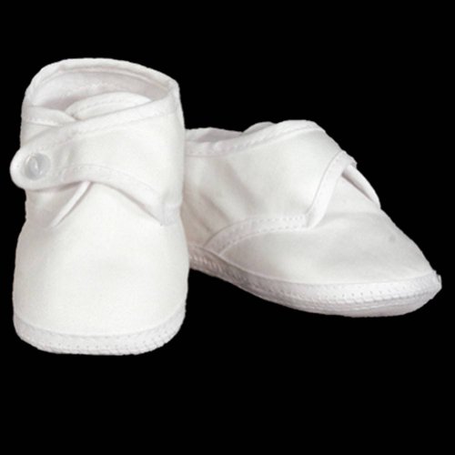 ベビー男の子ホワイトコットンサテン地パールボタン洗礼式靴0 – 3 カラー: ホワイト