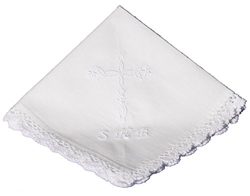 コットン家宝洗礼ギフトハンカチと刺繍されたクロスとカスタムのモノグラム文字は3文字まで指定してオーダー」を参照してください。美しい編みスタイルレースエッジの可能性があります。サイズ: 11.5インチ?X 11.5」を参照してください。