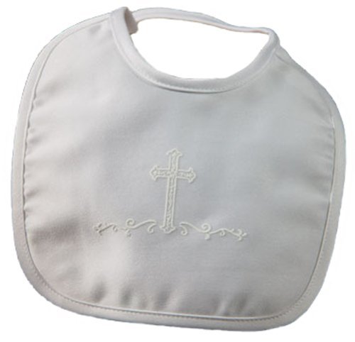 Matte Satin Bib with Screened Cross (One Size/White) by Little Things Mean A Lot