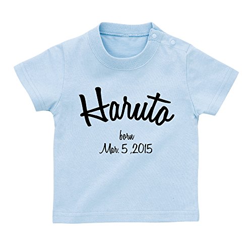 名前入り Tシャツ / ベビーサイズ [BT150] 80cm ライトブルー×ブラックロゴ 出産祝い 誕生日 プレゼント おしゃれな 名入れ ベビー服