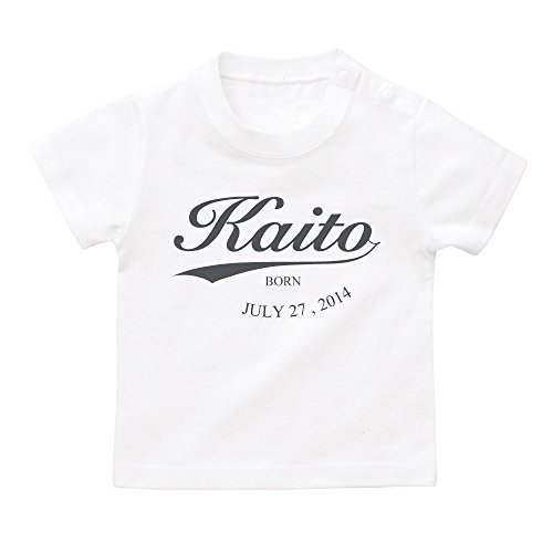 名入れ Tシャツ / ベビーサイズ [BT15] 90cm ホワイト×ダークグレーロゴ 出産祝い 誕生日 プレゼント おしゃれな 名前入り ベビー服