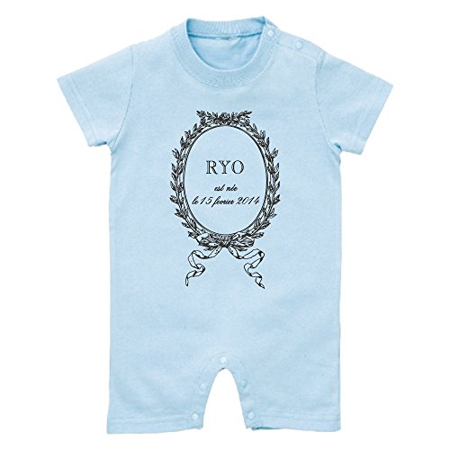 名前入り ショート ロンパース [HR22] 80cm ライトブルー×ダークグレー柄 出産祝い 誕生日 プレゼント おしゃれな 名入れ ベビー服