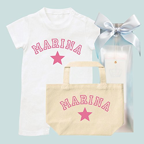 - ◆お名前入りロンパースと同柄のお名前入りミニトートをギフト専用パッケージにセットしたスペシャルギフトパック