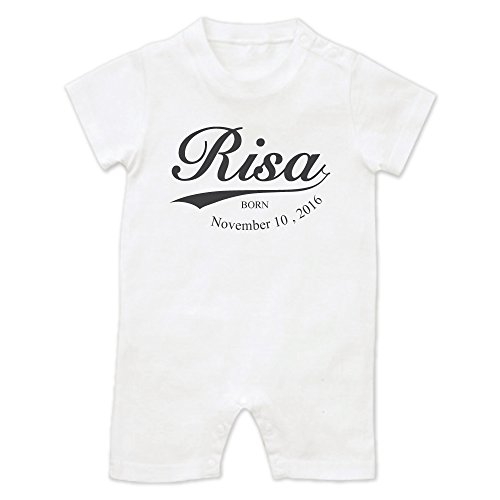 名前入り ショート ロンパース [HR17] 70cm ホワイト×ダークグレーロゴ 出産祝い 誕生日 プレゼント おしゃれな 名入れ ベビー服