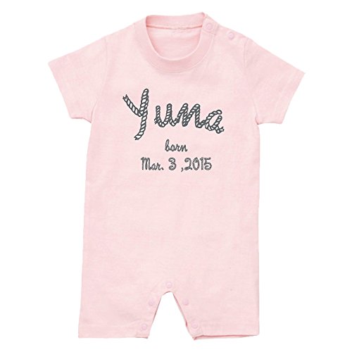 名前入り 半袖 ロンパース [HR153] 80cm ライトピンク×グレーロゴ 出産祝い 誕生日 プレゼント おしゃれな 名入れ ベビー服