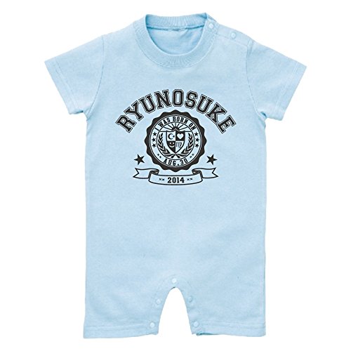 名入れ ショート ロンパース [HR90] 70cm ライトブルー×ダークグレー柄 出産祝い 誕生日 プレゼント おしゃれな 名前入り ベビー服