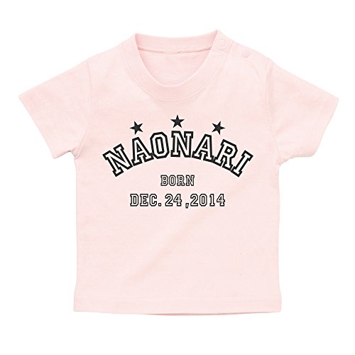 名入れ Tシャツ / ベビーサイズ [BT23] 90cm ライトピンク×ダークグレーロゴ 出産祝い 誕生日 プレゼント おしゃれな 名前入り ベビー服