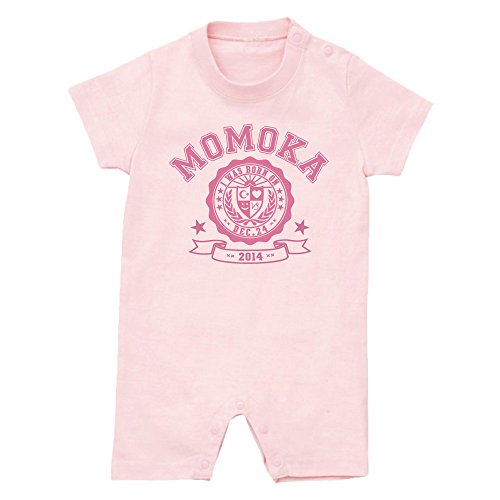 名入れ 半袖 ロンパース [HR90] 80cm ライトピンク×ピンク柄 出産祝い 誕生日 プレゼント おしゃれな 名前入り ベビー服