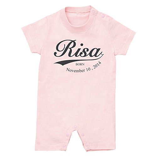 名前入り 半袖 ロンパース [HR18] 80cm ライトピンク×ダークグレーロゴ 出産祝い 誕生日 プレゼント おしゃれな 名入れ ベビー服
