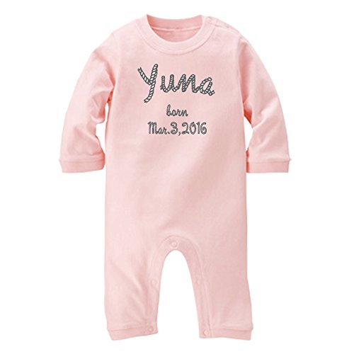 名入れ 長袖 ロンパース [LR201] 80cm ライトピンク×グレーロゴ 出産祝い 誕生日 プレゼント おしゃれな 名前入り ベビー服