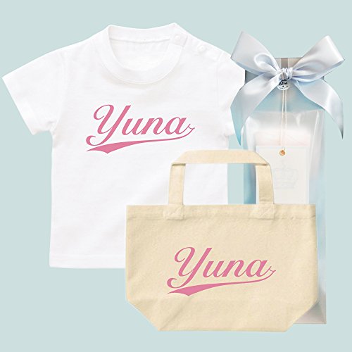 出産祝い 名前入り ギフトセット / Tシャツ & トートバッグ [GP71] 90cm [Tee]ホワイト×ピンクロゴ 出産祝い 誕生日 プレゼント おしゃれな 名入れ ギフト