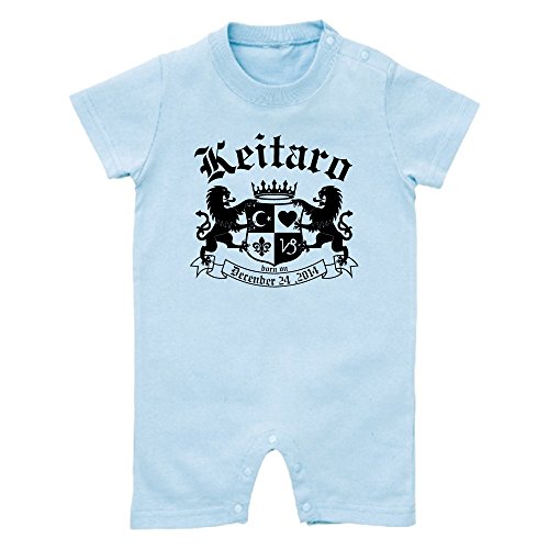 名前入り ショート ロンパース [HR93] 80cm ライトブルー×ブラック柄 出産祝い 誕生日 プレゼント おしゃれな 名入れ ベビー服
