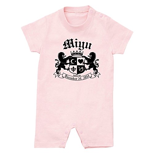 名入れ 半袖 ロンパース [HR93] 80cm ライトピンク×ブラック柄 出産祝い 誕生日 プレゼント おしゃれな 名前入り ベビー服