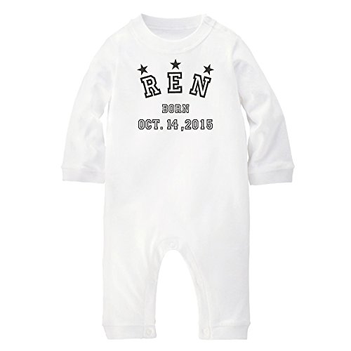 名入れ 長袖 ロンパース [LR194] 70cm ホワイト×ダークグレーロゴ 出産祝い 誕生日 プレゼント おしゃれな 名前入り ベビー服