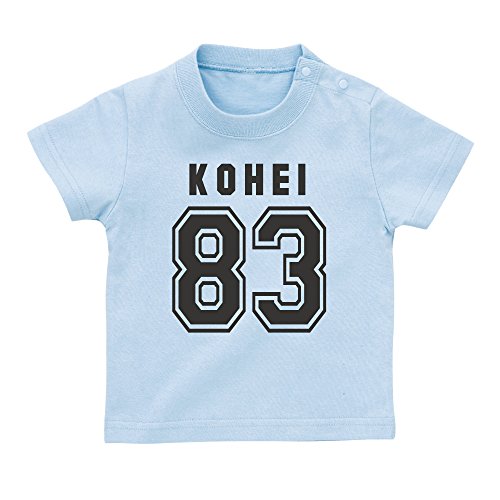 名入れ ナンバーTシャツ / ベビーサイズ [BT310] 90cm ライトブルー×ダークグレーロゴ 出産祝い 誕生日 プレゼント おしゃれな 名前入り ベビー服