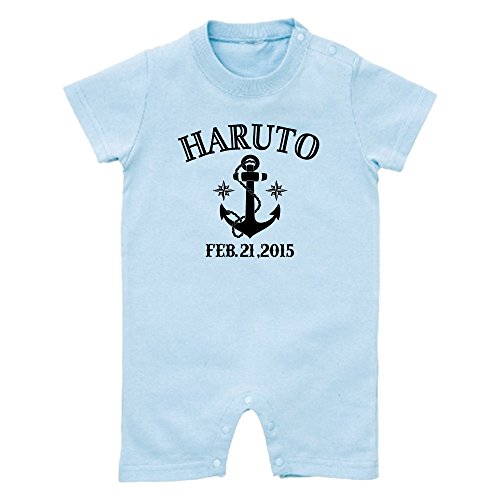 名入れ ショート ロンパース [HR316] 70cm ライトブルー 出産祝い 誕生日 プレゼント おしゃれな 名前入り ベビー服