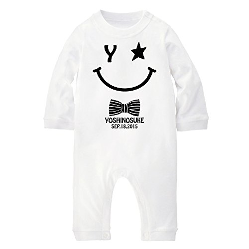 名前入り 長袖 ロンパース [LR340] 70cm ホワイト 出産祝い 誕生日 プレゼント おしゃれな 名入れ ベビー服