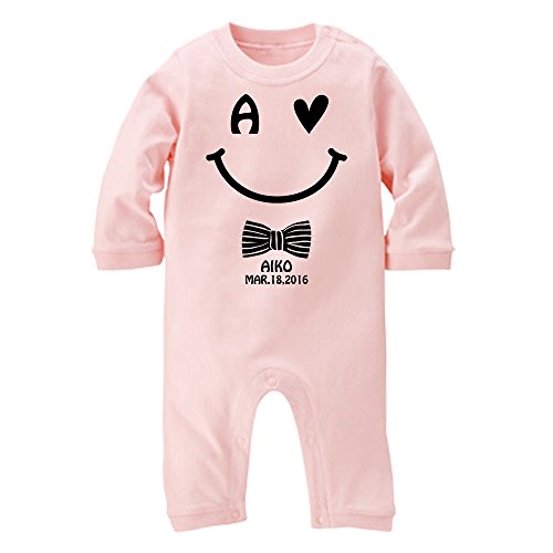 名入れ 長袖 ロンパース [LR340] 70cm ライトピンク 出産祝い 誕生日 プレゼント おしゃれな 名前入り ベビー服 女の子