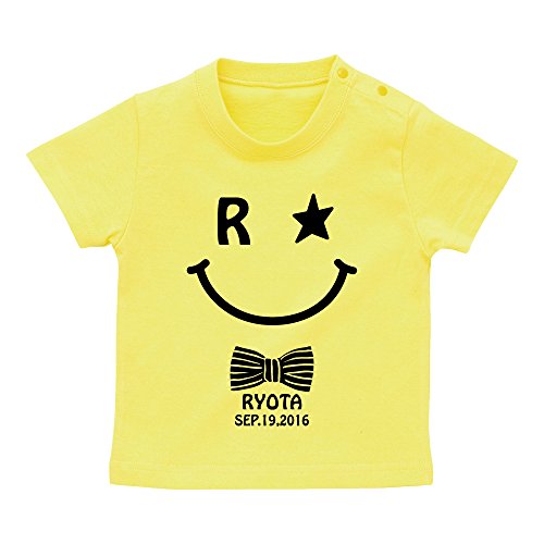 名前入り スマイル柄 Tシャツ / ベビーサイズ [BT323] 80cm イエロー 出産祝い 誕生日 プレゼント おしゃれな 名入れ ベビー服