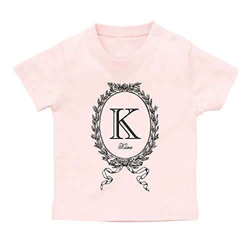 イニシャル Tシャツ / ベビーサイズ [BT345] 90cm ライトピンク×ダークグレー柄 出産祝い 誕生日 プレゼント おしゃれな 名入れ ベビー服