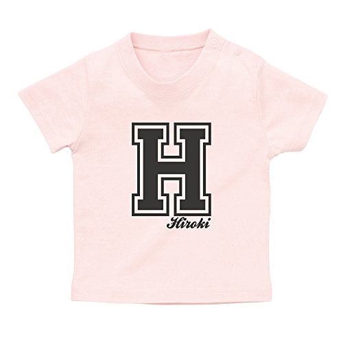 イニシャル Tシャツ / ベビーサイズ [BT346] 90cm ライトピンク×ダークグレーロゴ 出産祝い 誕生日 プレゼント おしゃれな 名前入り ベビー服