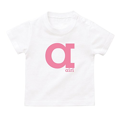 イニシャル Tシャツ / ベビーサイズ [BT343] 80cm ホワイト×ピンクロゴ 出産祝い 誕生日 プレゼント おしゃれな 名入れ ベビー服